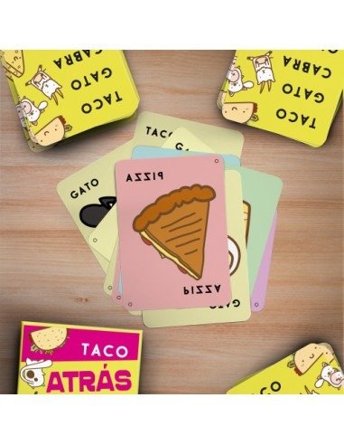 Es simple, pero no te confíes. 🤪 Se reparten las cartas y los jugadores, por turnos, revelan una mientras dicen la palabra de su carta superior: "Taco", "Cabra", "Queso" o "Pizza". ¡Pero acá viene lo bueno! También tenés que recordar la carta que se jugó antes. ¡Si la palabra coincide con la carta central O con la anterior, tenés que ser el más rápido en tocarla y gritar la palabra correcta! El que se equivoca, pierde.